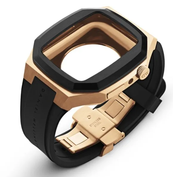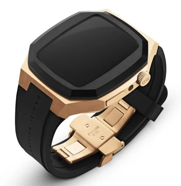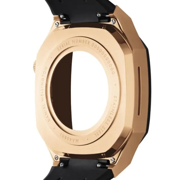 Daniel Wellington Switch Rose Gold kellonranneke sopii 44mm kokoisiin Apple Watch älykellon SE-malleihin 4, 5 ja 6. Kuori on valmistettu ruostumattomasta teräksestä ja ranneke synteettisestä kumista (FKM). Rannekkeen leveys on 22mm. Säädettävä rannekkeen pituus on 135mm-200mm.