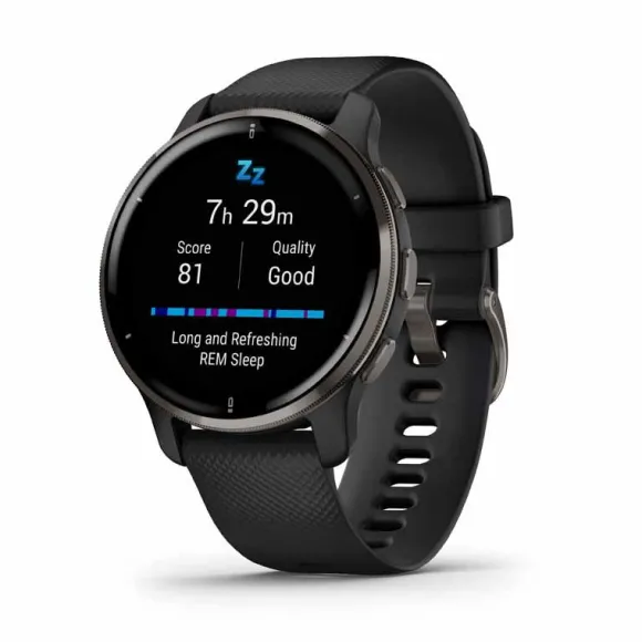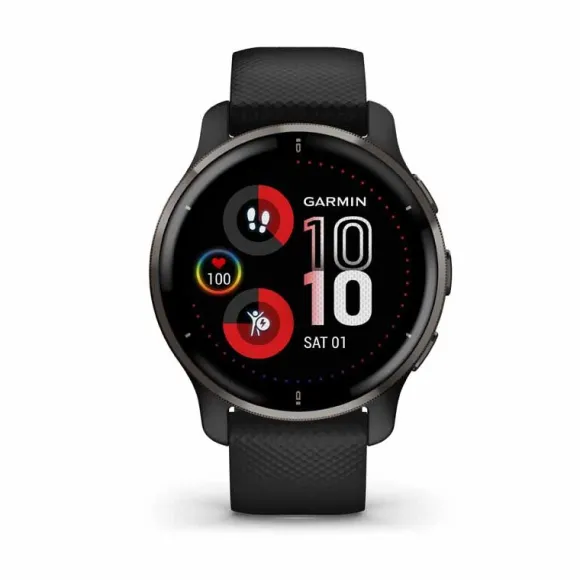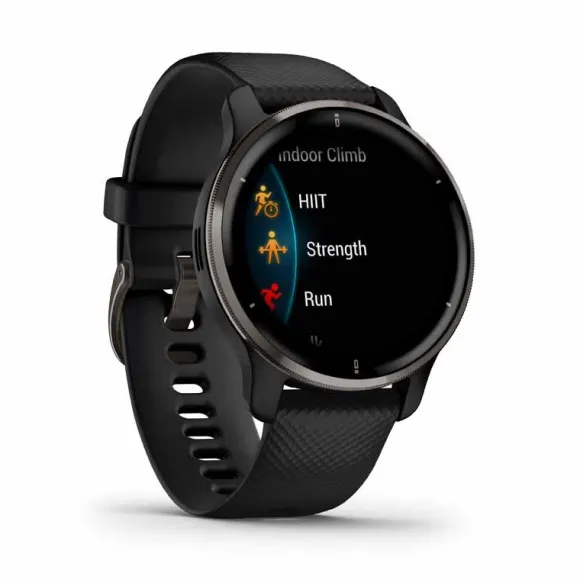 Garmin Venu 2 Plus on päivitetty versio suositusta Garmin Venu 2 –kellosta, joka on yksi parhaista hyvinvoinnin seurannan työkaluista. Venu 2 Plus on saanut uusia ominaisuuksia, joilla pystyt keskittymään juuri sinulle tärkeisiin asioihin. Monipuolisten työkalujen avulla löydät optimaalisen tasapainon työn, vapaa-ajan ja treenaamisen välillä. Garmin Venu 2 Plus 010-02496-11 Black Slate on tyylikään täsyin musta versio, jonka hillitty ulkonäkö on kotonaan niin arjen työssä kuin kuntoilussa.