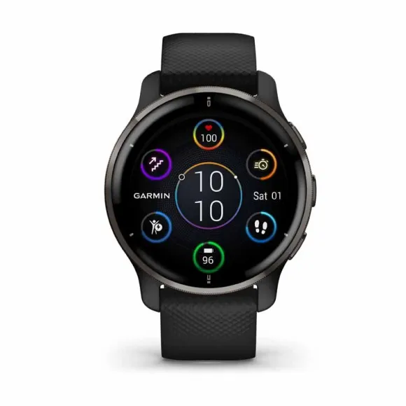 AMOLED-näyttö on hieman suurempi kuin aiemmassa Venu-mallissa, ja siitä on helppo sekä mukava seurata animoituja harjoituksia. Tähän tehopakkaukseen on sisäänrakennettu jopa 25 lajivaihtoehtoa, kuten paino- tai HIIT-harjoittelu, juoksu tai pilates. Löydät varmasti jotain yksilöllisiin tarpeisiisi, ja tämän lisäksi Garmin Coach tarjoaa vielä useita maksuttomia treeniohjelmia. Kertoopa kello myös kuntoikäsi: laite arvioi kehosi tämänhetkisen iän viikottaisten suoritusten, leposykkeen sekä painoindeksin tai rasvaprosentin perusteella. Saat myös vinkkejä oman kuntoikäsi alentamiseen.