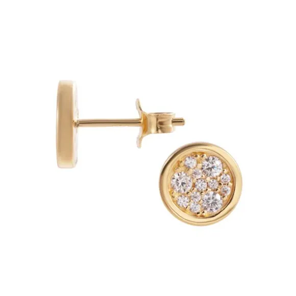Kauniita Plus-hopeakorvakoruja koristavat kirkkaat, monen kokoiset zirkoniat, jotka on ripoteltu korvakorun pinnalle kuin tähdet taivaalle. Hopea on käsitelty lämpimän kullan väriseksi.
