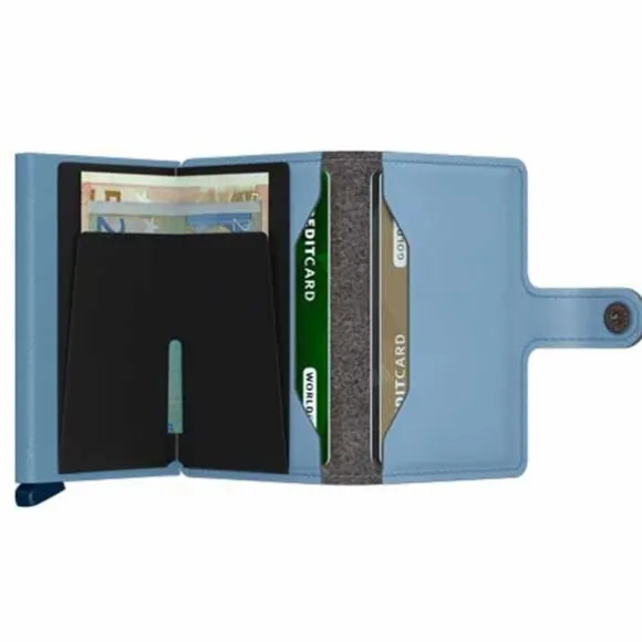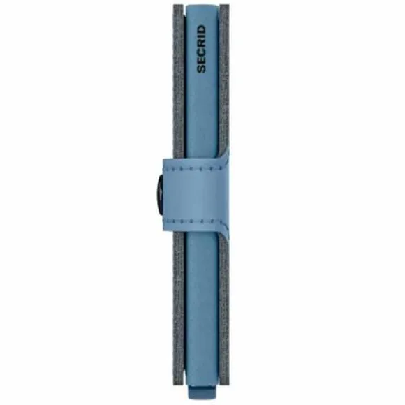 Taivaansinisessä Secrid Miniwallet Yard Powder Sky Blue-lompakossa on RFID-suojaus, johon mahtuu 6 korttia. Lompakon saa hyvin suljettua nepparikiinnityksellä.