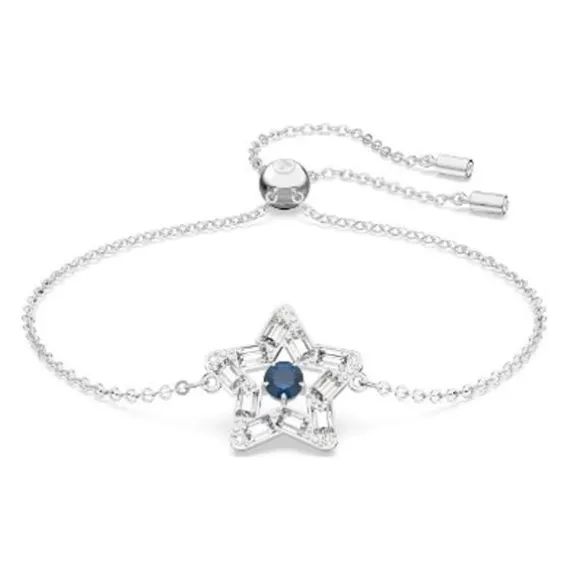 Swarovski Jewelry Stella5639187 on kaunis hopeanvärinen rannekoru. Tähdenmuotoinen yksityiskohta Swarovskin kristalleilla. Liukulukon ansiosta pituus helposti säädettävissä.